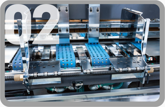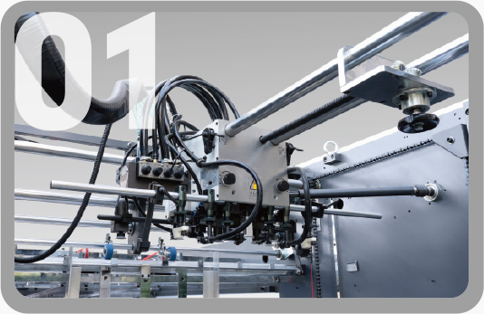 配置高速專(zhuān)用四吸四送飛達(dá)頭,提紙吸嘴與送紙吸嘴角度和高度均可調(diào)節(jié)。紙線(xiàn)左右傾斜可調(diào),保證走紙高速平穩(wěn)。