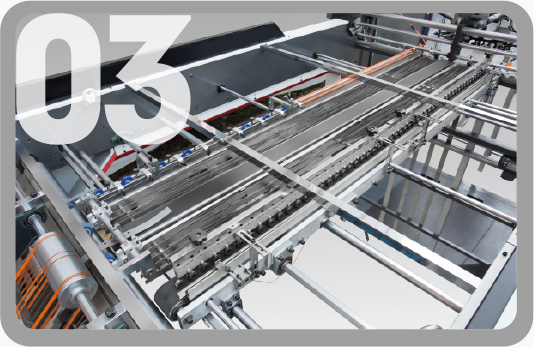 采用特殊網(wǎng)紋輪設(shè)計(jì),精細(xì)研磨,保證涂膠均勻。下輯采用水輾清洗。